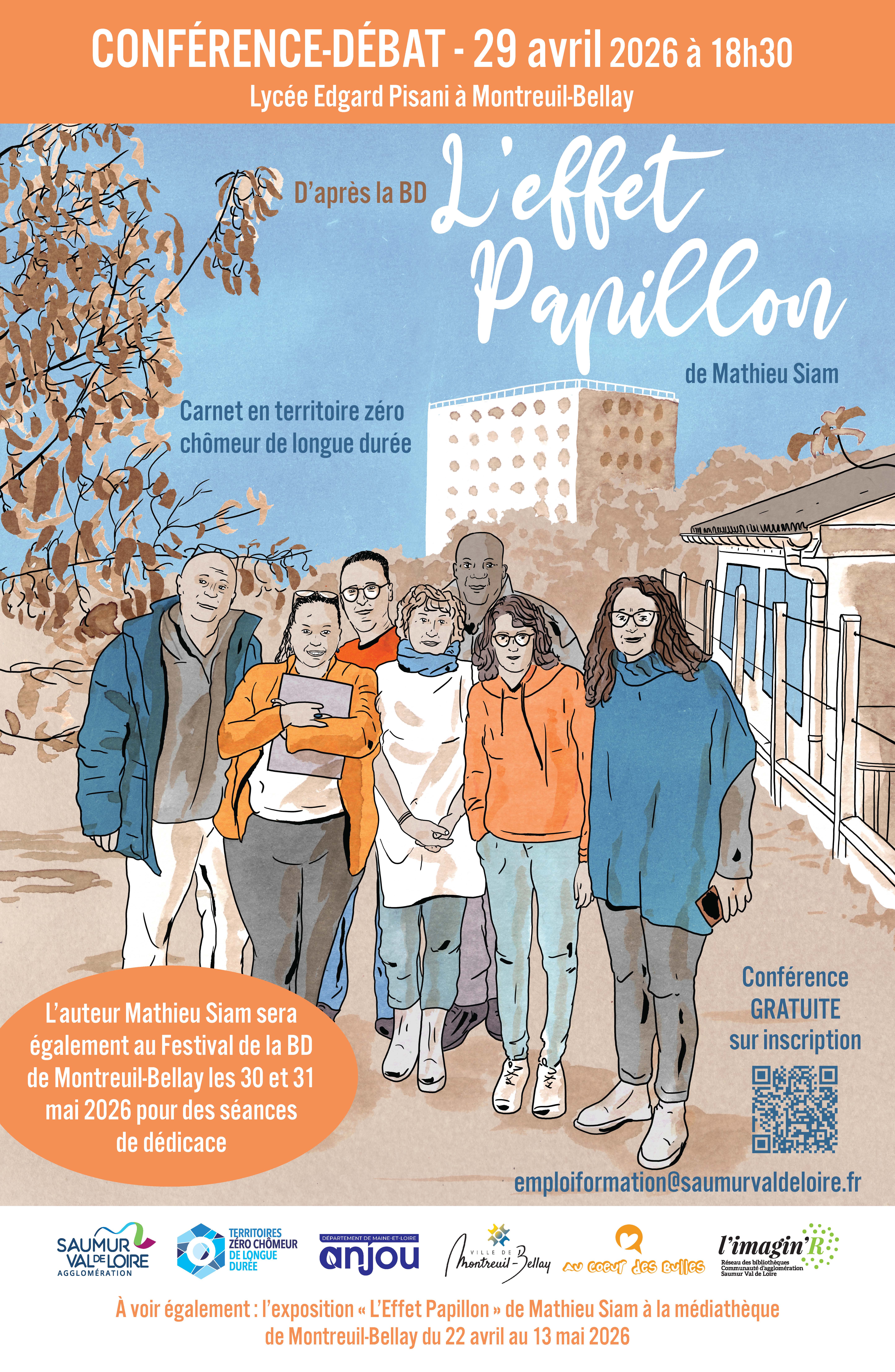 Découvrez l’aventure « Territoires Zéro Chômeur » avec la BD « L’effet papillon, carnet en territoire zéro chômeur de longue durée » de Mathieu SIAM lors de la conférence-débat du mercredi 29 avril 2026 à 18H30 à l’amphithéâtre du lycée Edgard Pisani à Montreuil-Bellay